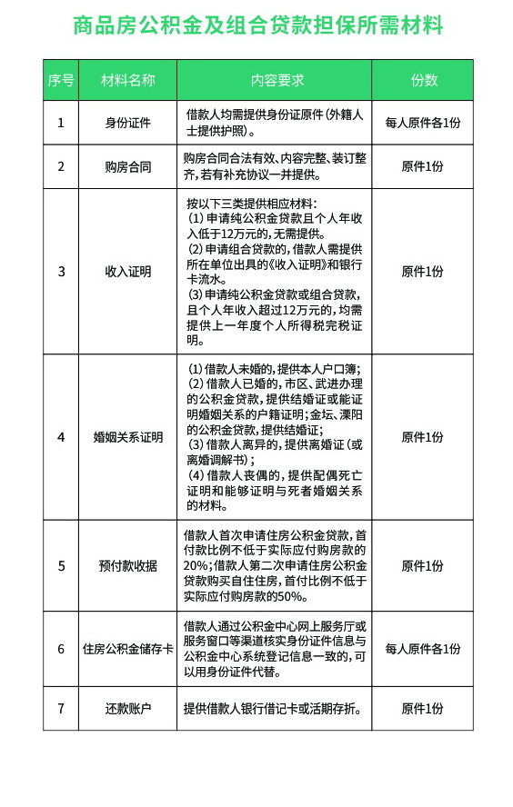 商品房公積金及組合貸款擔保所需材料